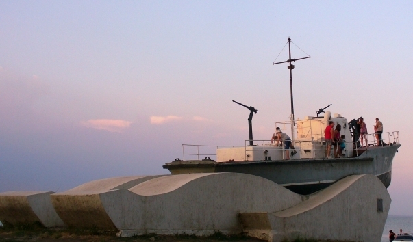 Памятник "Морякам, участникам боёв за Таганрог в Великой Отечественной войне от благодарных таганрожцев" представляет собой настоящий катер-тральщик КЭМТЩ-772, который установлен на постаменте, сделанном в виде морских волн. Памятник был торжественно открыт 7 мая 1975 года, это событие было приурочено к 30-й годовщине победы в Великой Отечественной войне. Авторами проекта этой композиции являются П.В. Бондаренко и В.П. Грунева.